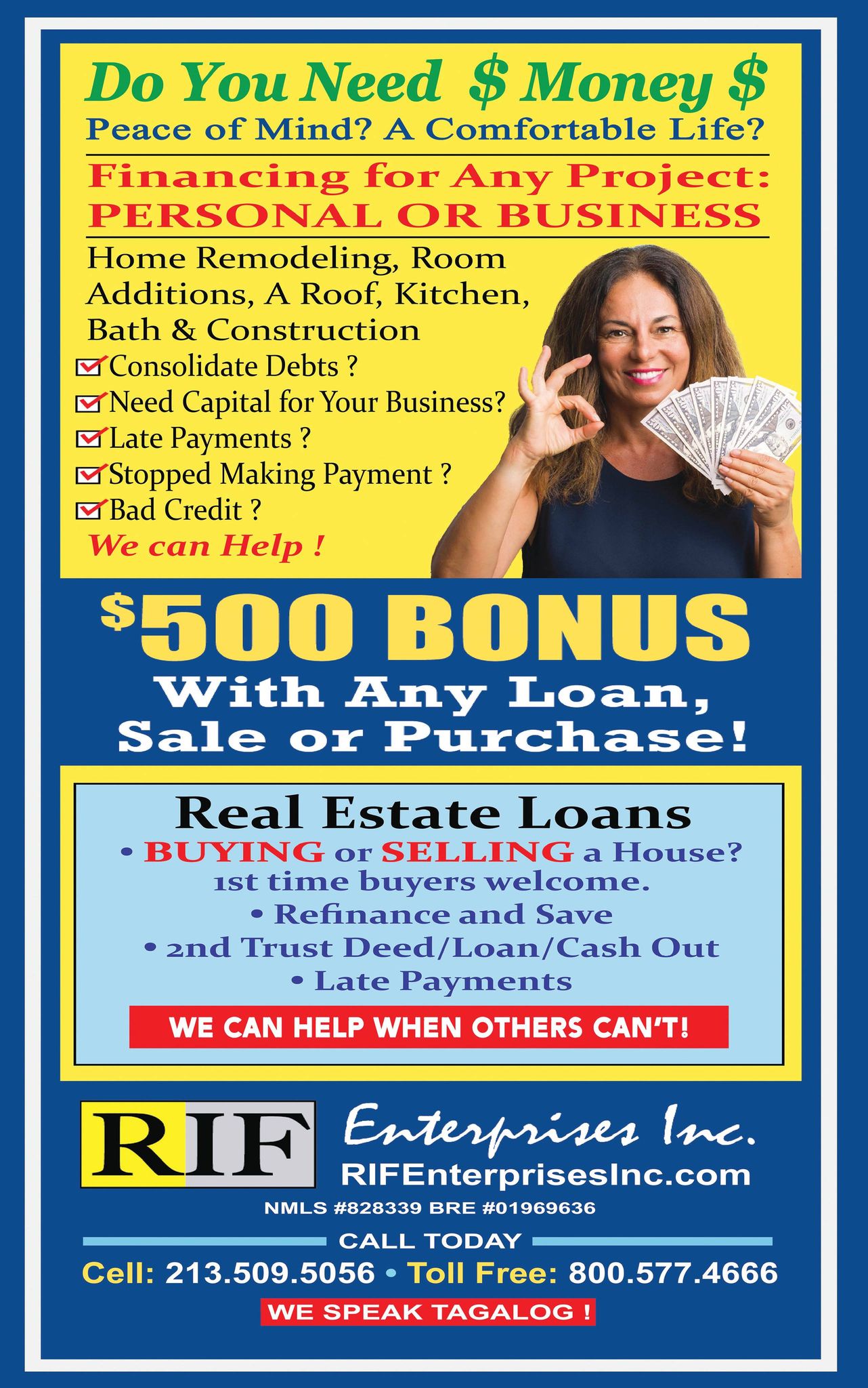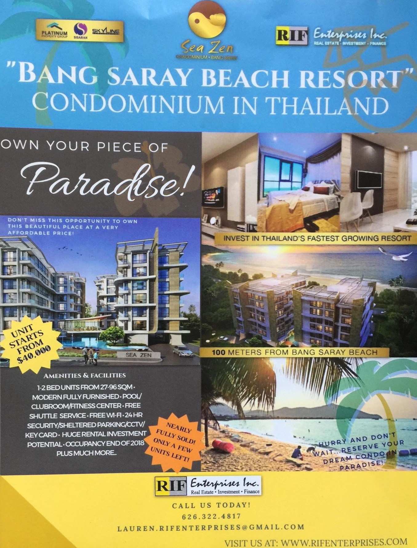 Was born with a vision to help empower its clients to be financially strong in the field of Real Estate, Investment and Finance. REAL ESTATE – In the field of Real Estate, the company excels in selling property domestically and internationally particularly its newest venture – Thailand Condominiums located in Bangsaray, Pattaya, Thailand. RIF Enterprises, Inc. is the only agent/partner authorized in the United States by Sea Zen Condominium to sell its condominium not only in the United States but internationally. INVESTMENT – Not only the company gives opportunity to own real property in the United States but it also provides opportunity to invest overseas. FINANCING – RIF opens the floodgates to all business owners the opportunity to obtain unsecured loans from $10,000 up to $5 million from small scale to large scale loans through its program Business Credit Counseling. LEARN MORE